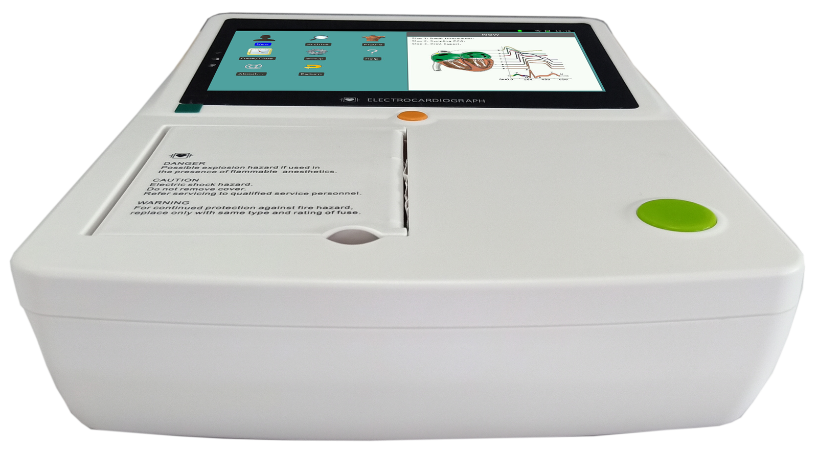 Smart Diagnostic Management: Automatically measures, calculates, and analyzes ECG parameters with anomaly detection. Supports waveform freeze, historical data review, and printing.